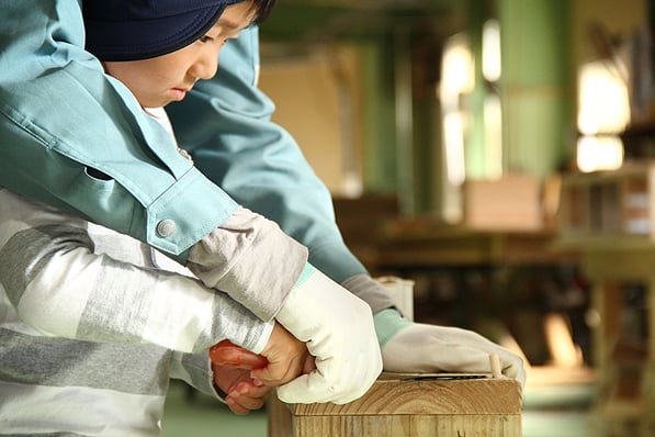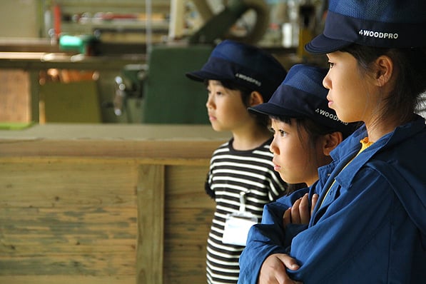 みるみるうちにきれいに加工されていく木材。じっと見つめる表情は真剣そのものでした!
