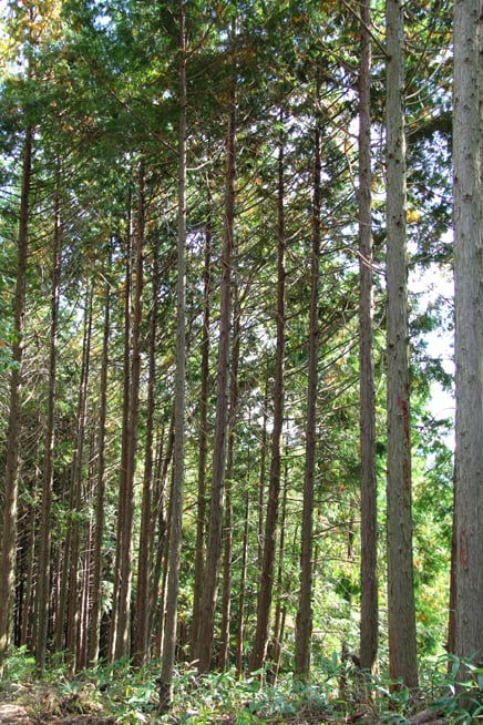 まっすぐ伸びるひのきの木々は神々しい雰囲気を醸し出しています。1本1本、大切に育てられています。