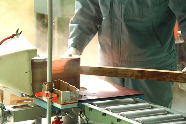 工場内では様々な加工をしています。研磨機を使うと、あっという間にツルツルに。