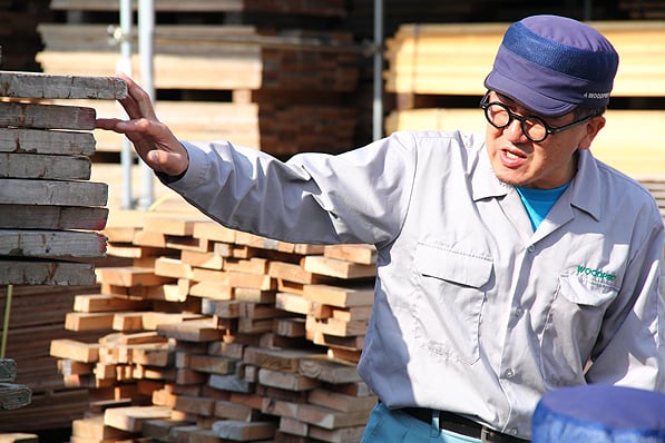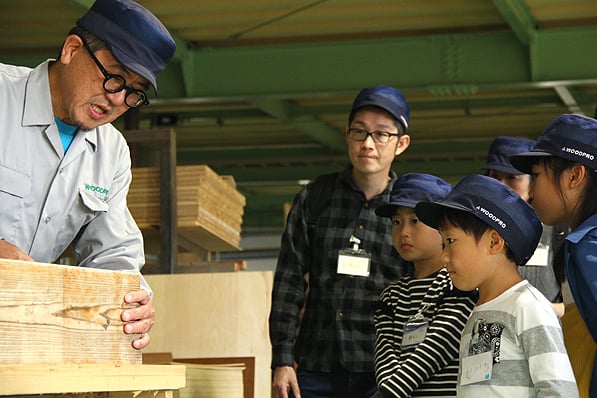 家具工場の社長さんに、日本で生えている木の説明から、
