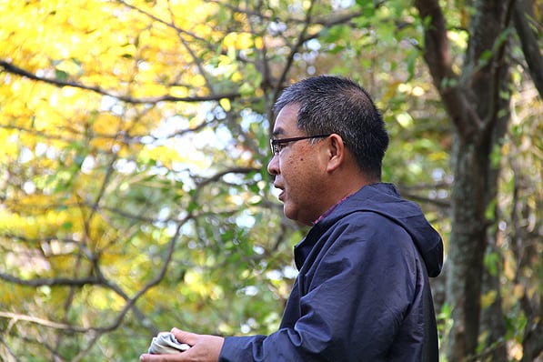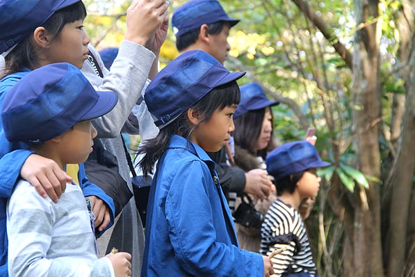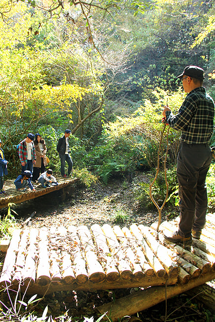 いろんな植物が生息している山林で、説明を聞きながら散策します。普段はあまり見ることのないめずらしい草花や木を間近に見ながら、爽やかな山の空気に触れ、とても気持ちのよいツアーのスタートです。