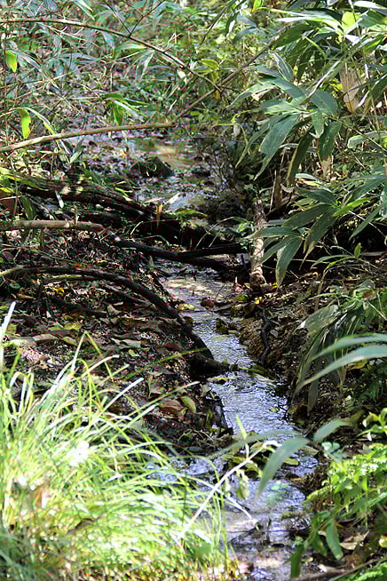 次は森の形成に欠かせない水について学びます。小川の始まりの場所で、実際の様子を観察しました。