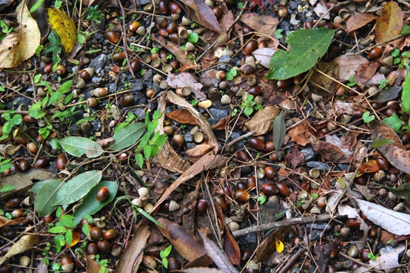 次の見学場所までの散策途中、大きなどんぐりの木の下に大量のどんぐりを発見♪