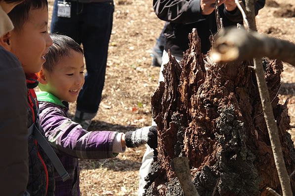枯れ果てた木にも、ものがたりがあります。実際手に触れて感じ取る事も貴重な体験です。