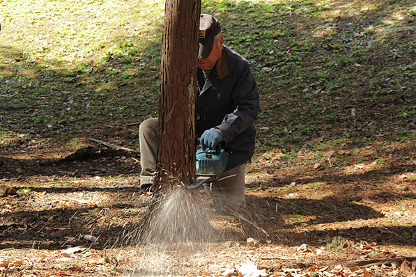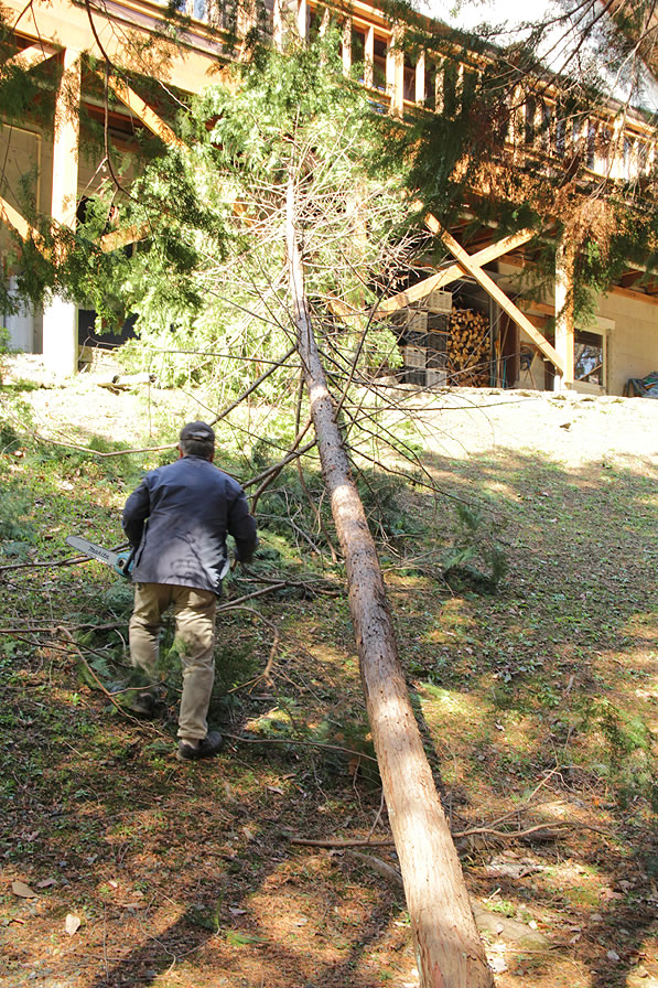 チェーンソーと倒れる木のミシミシッという音が辺りに響き渡ります。