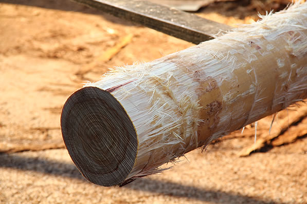 あっという間に皮が剥けて丸裸になりました。皮を剥いた丸太はなかなか見ることがありませんね!