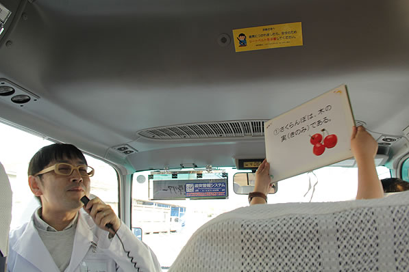 帰りのバスでは突然“木のハカセ”が登場し、木や山に関するクイズ大会を開催!