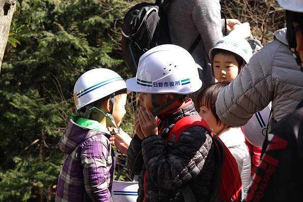 みんな間近でみる伐採作業にちょっとどきどきしながら注目しています。