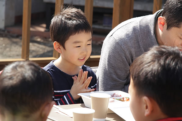 さあ、無事に伐採が完了したところで、お昼ごはんの時間です。いただきまーす♪